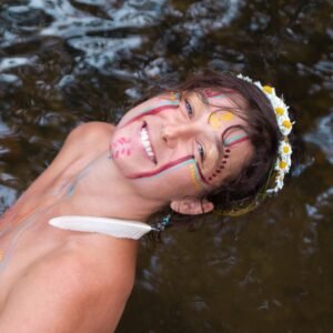 Ces expériences, à la croisée du rêve, de la présence et du partage, l’amènent peu à peu à s’apprivoiser et à se libérer des masques sociaux qu’elle porte malgré elle, pour retrouver sa vraie nature profonde. Depuis 2018, elle met à profit ce cheminement personnel et artistique au travers d’ateliers d’éveil des sens qu’elle anime au service de plus grand. Et où elle invite chacun et chacune à ressentir et à vivre pleinement l’instant présent, afin de renouer avec cet enfant que nous portons tous à l’intérieur et qui ne demande qu’à être vu.